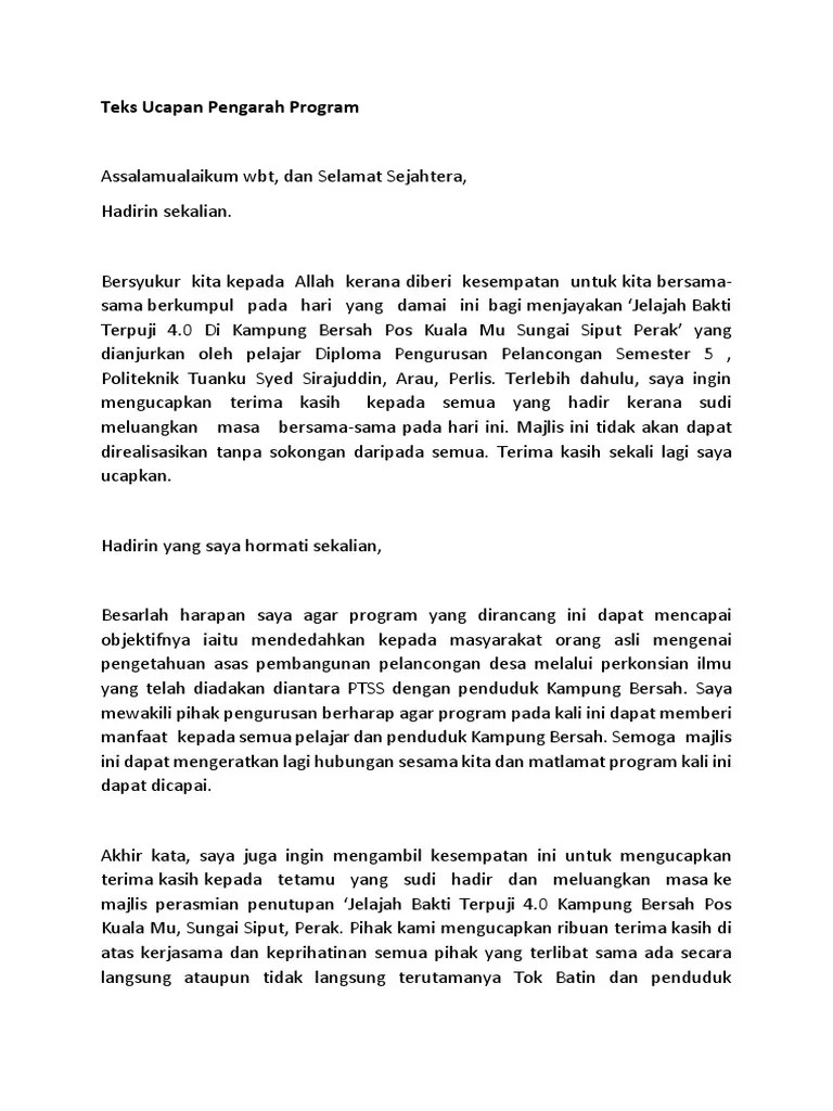 Contoh teks ucapan pengarah program. Teks ucapan pengacara majlis makan malam hari keluarga 2017 age. View teks ucapan pengarah program.docx from gmgf 2023 at northern university of malaysia. Bismillahi rahmanirrahim, terima kasih saudara pengacara majlis yang dihormati tuan guru besar tuan md . Teks ucapan pengarah program "flood: